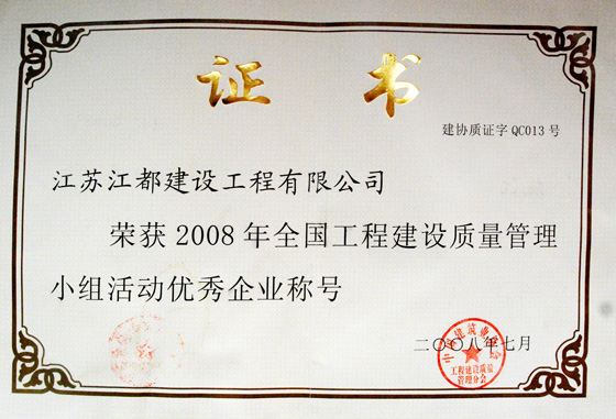 2008年全国工程质量管理小组优秀活动优秀企业