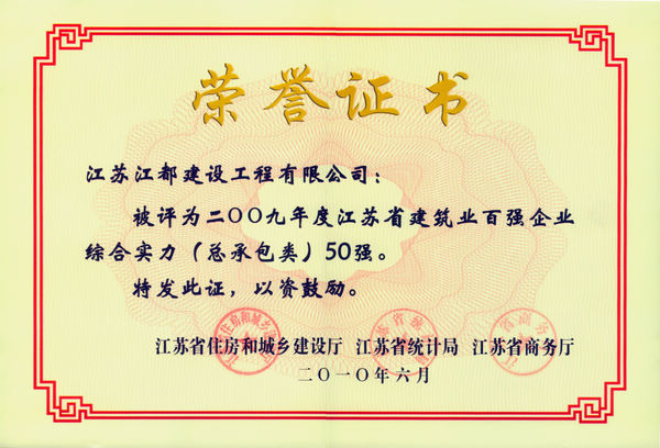 2009年江苏省建筑业百强企业综合实力50强