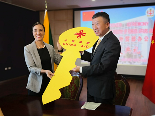 10月16日,由集团公司援建的牙买加外交外贸部办公楼项目移交仪式隆重举行,牙买加外交外贸部部长卡米娜•约翰逊-史密斯和我国驻牙买加大使田崎出席典礼并致辞,双方共同签署了中国援牙外交外贸部办公楼项目政府间移交证书,牙外交外贸部常秘吉尔伯特-罗伯茨、使馆经商参赞范江虹、牙经济增长和就业部、牙规划院及在牙中资企业代表出席移交仪式。