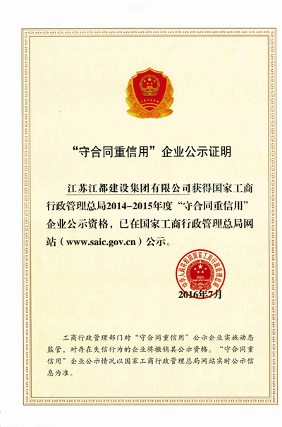 重合同守信用证书