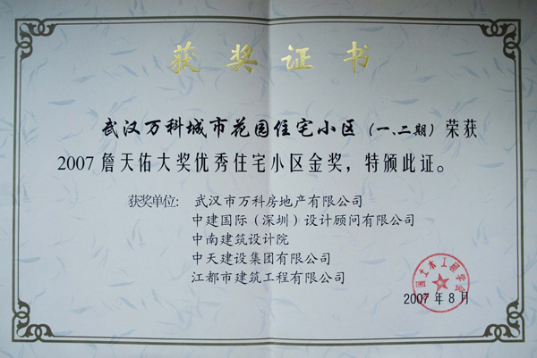 万科城市花园住宅小区詹天佑奖