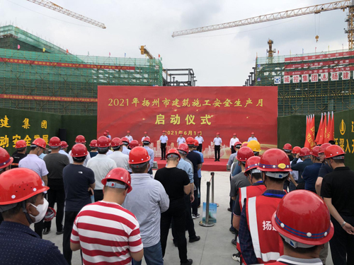 启动仪式上,市住建局解读了2021年扬州市建筑施工“安全生产月”活动文件;住建主管部门代表高邮市住建局、邗江区住建局,建设单位代表颐和公司,施工单位代表扬建集团、邗建集团,监理单位代表扬州建筑设计院公司分别作了交流发言;并对8家安全管理示范项目进行了授旗,由扬州公司承建的佳家五期项目被授予“网格化”管理示范项目。