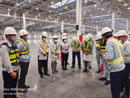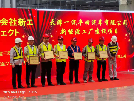 6月29日,天津公司承建的天津一汽丰田汽车有限公司新能源工厂总装车间标段工程项目一次性通过竣工验收,并进行了主体厂房交付暨总结表彰大会。日方总裁前川亲自带领团队视察总装车间并授予天津一汽丰田新能源分公司项目“品质优秀奖”和“优秀管理团队奖”两项荣誉奖牌。