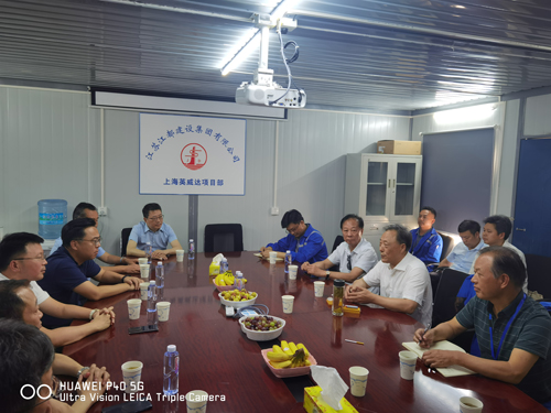 董事长褚勤就项目的概况、施工进度、施工重点难点等向朱区长一行进行了汇报,英威达项目由美国英威达公司投资10亿美元建设的40万吨/年己二腈(ADN)生产基地,被列为2020年上海市重大建设项目,该项目结算价约9亿元。在项目建设过程中,项目部严格秉承诚信经营理念,以精湛的施工技术、务实严谨的工作作风赢得了各方好评。目前项目处于机电工程施工阶段,预计今年年底竣工交付。