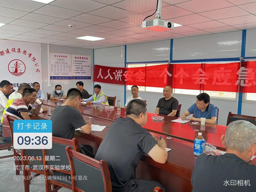 今年6月是第22个全国“安全生产月”,为进一步提高项目部人员安全意识,预防和杜绝工地安全生产事故发生,消除安全隐患,6月13日,武汉公司经理王小龙带队对武汉市实验学校项目进行了安全检查。