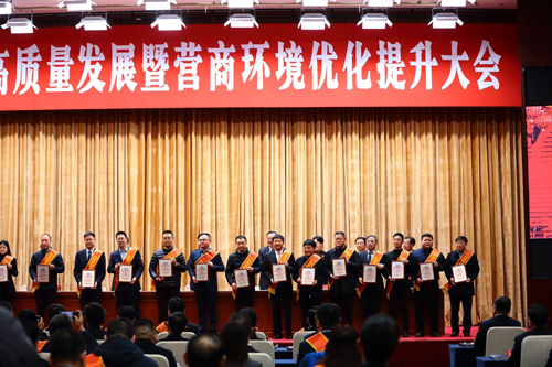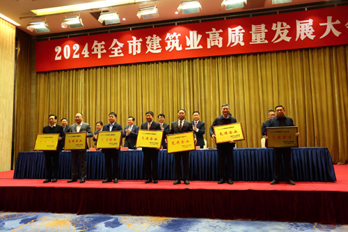2月18日,总裁钱春余代表集团公司出席在全市2024年建筑业高质量发展大会,接收市委书记王进健亲自颁奖。