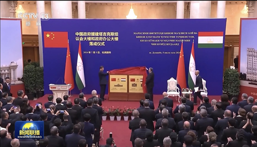 塔吉克斯坦是我国“一带一路”重要合作伙伴。习近平主席和拉赫蒙总统于2019年6月为本项目模型揭幕。拉赫蒙说这是习近平主席在对塔吉克斯坦首次国事访问10周年之际赠予塔吉克斯坦人民的最珍贵礼物。习近平对塔吉克斯坦议会大楼和政府大楼落成表示热烈祝贺,对两国建设者齐心协力、攻坚克难、保质保量完成各项任务、确保两座大楼如期建成表示崇高敬意和诚挚感谢。两座大楼正式落成,将极大改善塔吉克斯坦议会和政府的办公条件,成为象征中塔友好合作的新地标。